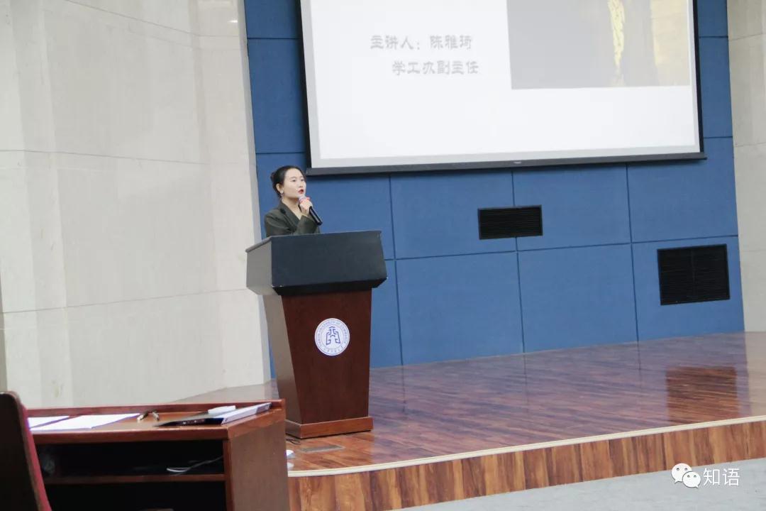 于11月6日晚在图书馆国际报告厅举行了2019级五大组织实习干事及班委责任意识培训会。党建办主任孙天宇,学工办主任范坷榆,学工办副主任王婧炜、陈雅琦,团委副书记薛焱智应邀出席并担任主讲。2019级五大组织实习干事及全体班委到场参加。