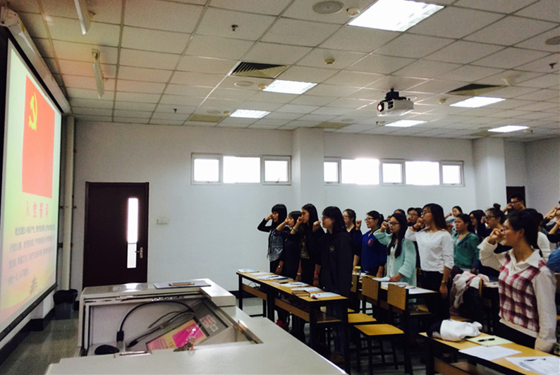 本次大会分为三项议程,由骆媛副书记主讲。第一项议程,工作指导与培训。骆媛以新《中国共产党章程》和《发展党员工作细则》为根本,以课件ppt为导读,从党员发展程序、新变化与重点内容、支部和党员的工作职责等几个方面予以了详细、重点讲解,为全体学生党员上了一堂重要的党课。第二项议程,工作要求与部署。骆媛从学生党员严以修身、严以律己、率先垂范、履职尽责、甘于奉献等几个方面对全体学生党员提出了明确的要求,并对党员责任区、党员联系班级责任制等工作进行了详细的部署和安排。第三项,责任承诺与宣誓。骆媛对党员责任进行了解读,全体学生党员签订了《学生党员责任制承诺书》,承诺书从8个方面自警、自省、自律、自查,为学生党员指出了明确而具体的努力要求,全体学生党员面对党旗庄严地许下了誓言,大会顺利圆满结束。