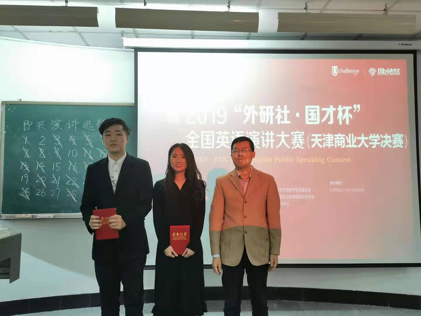 本次比赛分为定题演讲和即兴演讲两个环节。首先,选手们以“My Big Story in 2049”为主题进行3分钟的定题演讲。选手们流利的英文、自信的神态尽情展示了天商学子对于人生、对于未来的憧憬与期望。在即兴演讲环节,选手们表达了自己对于当今时事热点的看法,分享了新时代青年对社会人生的独特见解,将演讲比赛推向高潮。演讲结束后,王占斌院长和外教Davis对选手们的精彩表现进行了点评,并提出了中肯的建议。