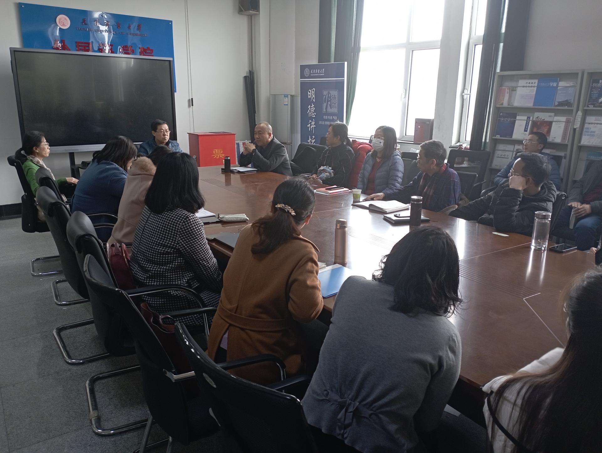 在学院会议室举行了教学督导座谈会,会议由教学副院长荆红艳主持,校级教学督导潮洛蒙教授、院级教学督导王永祥副教授、刘淑梅副教授、郭松副教授及全体教师参加座谈。