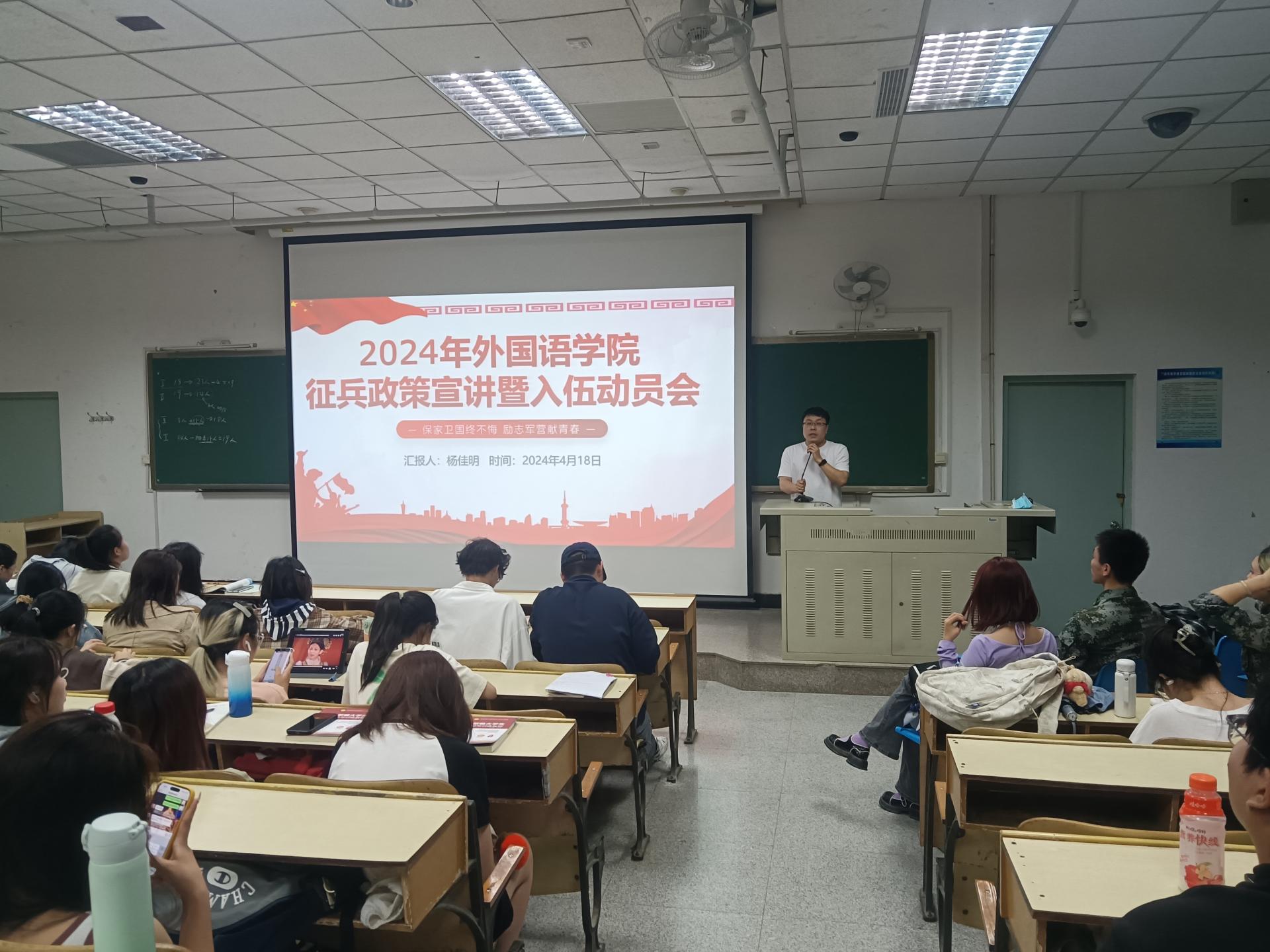 开展退伍大学生入伍经历分享会和征兵政策宣讲会等活动。活动中,退伍军人郭腾骏和陈红分享了入伍经历,杨佳明老师做政策宣讲。本次活动会由杨佳明老师主持,300余名学生参加。