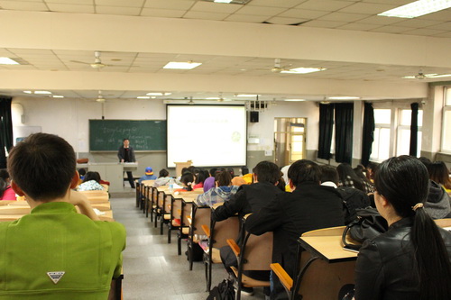 黄乐平向同学们分别介绍了“翻译”、“语言学”、“文化”,这三个英语考研方向以及英语考研的严峻形势和现状,并简要说明了报考本校和其他院校英语专业研究生的区别。王占斌首先向同学们描述了研究生的意义及就业前景,为大家深刻解读了“考研”这两个字的含义。他结合自身经历,讲述了一些报考研究生成功或失败的的事例,让大家对考研选择志愿的重要性有了深刻领悟,也让同学们对自己的考研目标有了明确定位。紧接着,他讲解了学院英语硕士点的发展历程, 其中包括了“翻译理论与实践”、“批评性语篇分析”、“跨文化商务沟通”三个方面,并着重强调了前两个硕士点较之天津其他高校甚至全国的优越性。最后,他指出报考专业和确定报考院校的重要性,同时阐明考研复习必须掌握正确的方法与思路。在讲座结束之际,黄乐平再次强调了学院英语硕士点的优势和实力,提醒有考研意向的同学们要尽快做足相关准备。